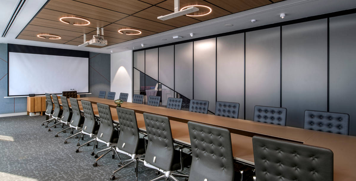 A range of high-spec collaboration spaces and meeting rooms offering different facilities, atmospheres and privacy settings were placed in intermediary areas, designed to lure workers away from individual desk spaces.
